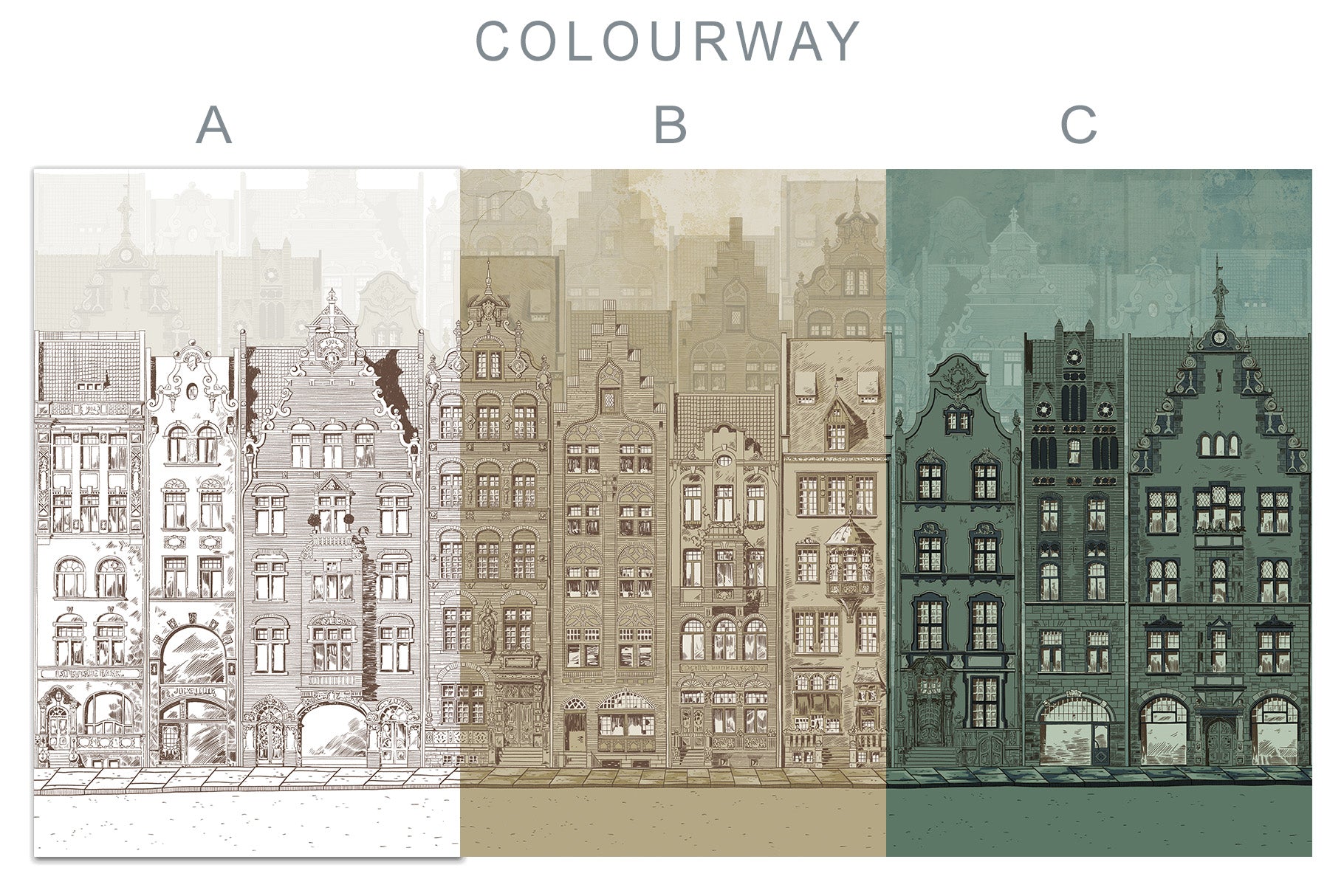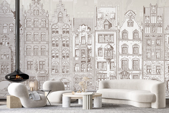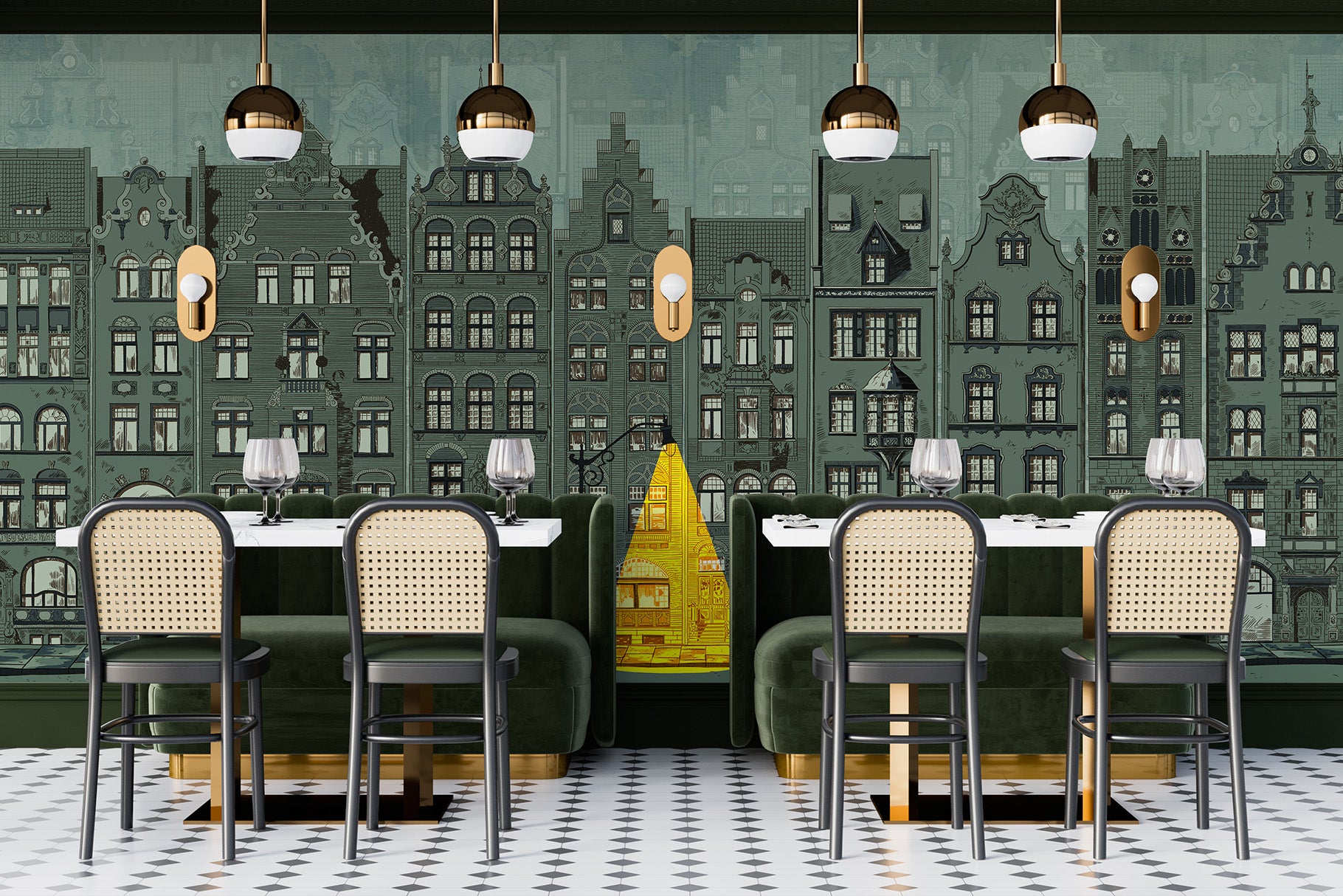 Амстердам – це фотошпалери з міським колоритом, що зображують стилізований архітектурний силует та шарм класичних будинків на каналах Амстердама. Чисті лінії, збалансовані кольорові блоки та вишукана ілюстративність створюють сучасний фреску, яка водночас відчувається теплою, затишною та позачасовою.