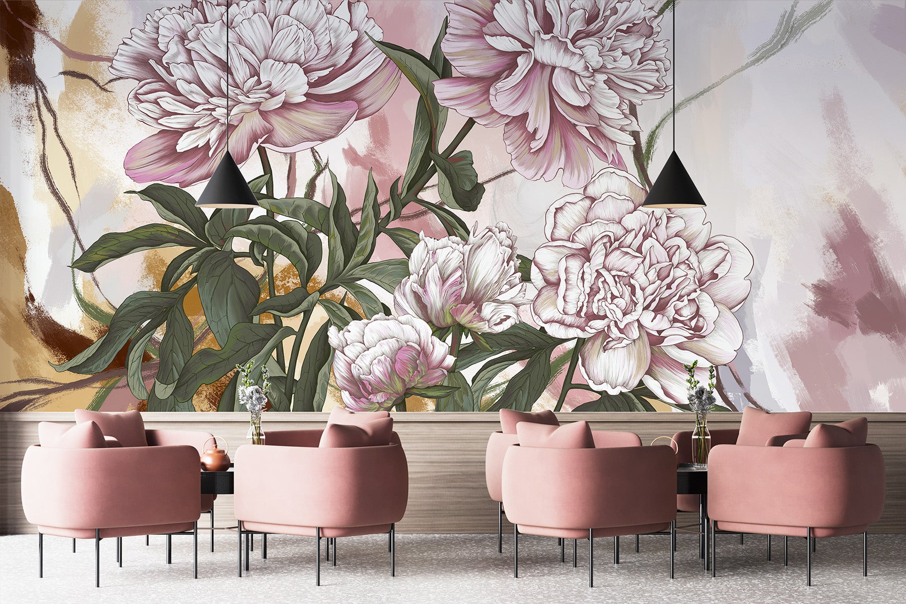 «Півонії Фреско» – це фотошпалери у стилі фрески, натхненні позачасовою красою квітів півоній. М’які квіткові візерунки, легкі шари та вишукане фрескове покриття створюють вишукану, романтичну атмосферу – елегантну, але збалансовану та готову до вживання в сучасних інтер’єрах.